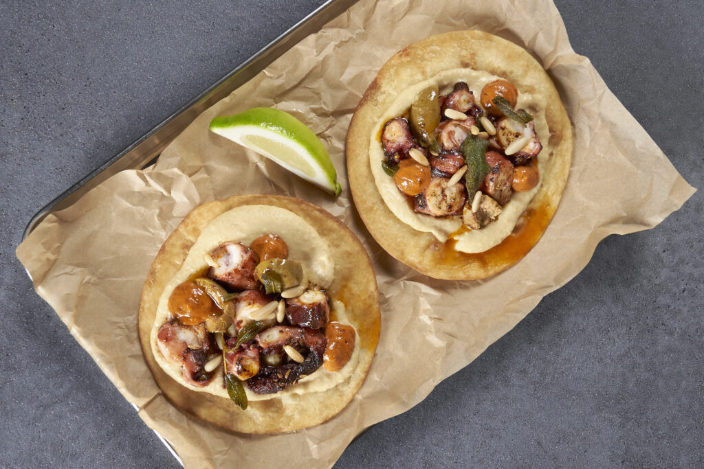 Nel menu, si continua con il Cuberoll alla griglia preparato con cipolline borrettane al brandy e pavè di patate aromatizzato, che strizza l’occhio alla Francia. Non mancano i piatti-icona del comfort food: la Cesar Salad, il Chicken burger. In chiusura i dessert, anche questi ispirati al comfort food: cheesecake alla birra stout, brownie&gelato, verdello e meringa. La carta dei vini mostra sensibilità e attenzione ai vini naturali siciliani dei piccoli produttori e alle bevande no alcohol come la kombutcha.