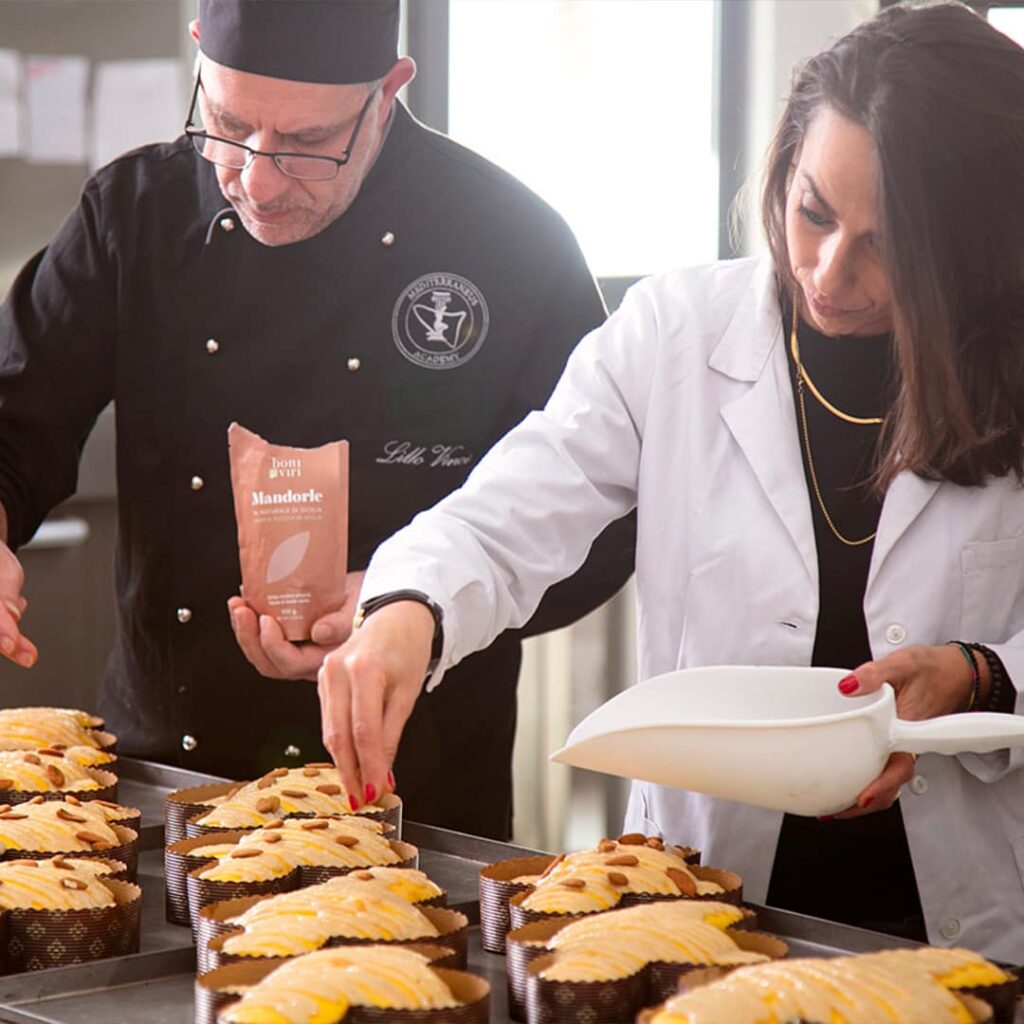 - Utilizzo della mandorla pizzuta di Avola di BONIVIRI, la varietà più pregiata della Sicilia che si distingue anche per il suo aroma dolce con qualche lievissima punta di amaro.
