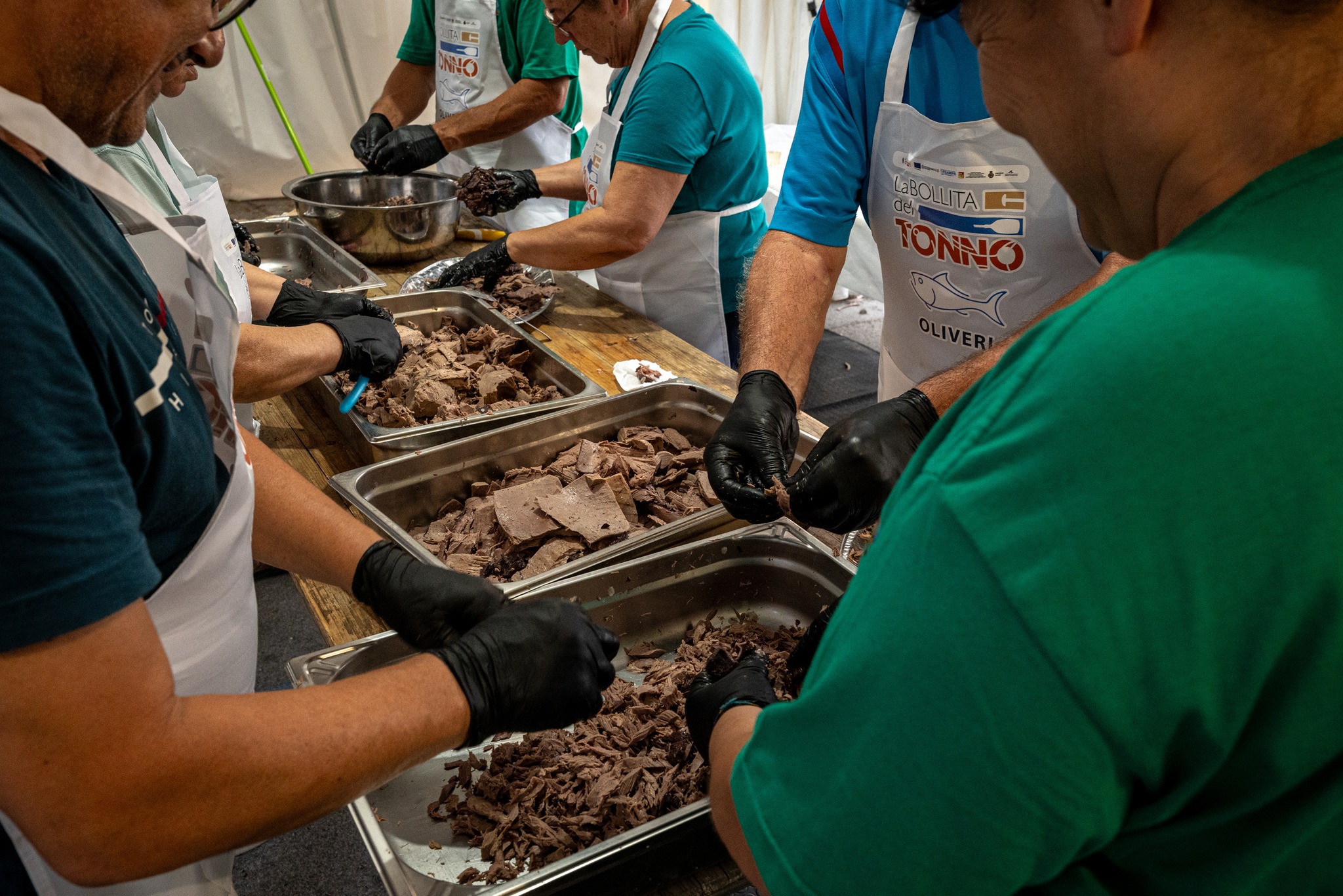 Il rituale de “La Bollita del Tonno” è stata riconsegnata ai cittadini di Oliveri come scrigno di memoria. Lo scorso weekend, il sito turistico – balneare, che si popola tantissimo d’estate, ha fatto concentrare un gran numero di turisti proveniente dal Nord Italia ma anche da Spagna e Francia nel nuovo evento del Management comunale. Due pentoloni hanno accolto per due pomeriggi di fila due tonni da cento chili a testa per raccontare cosa sia “La Bollita del Tonno ad Oliveri” e, da innesto a questo rito della collettività che trae origine dall’epoca della Mattanza, si sono avvicendati talk show, cooking show e degustazioni con produttori che hanno riproposto ricette a base tonno. Oliveri ha saputo unire memoria, identità, cultura del mare, sostenibilità e gusto.